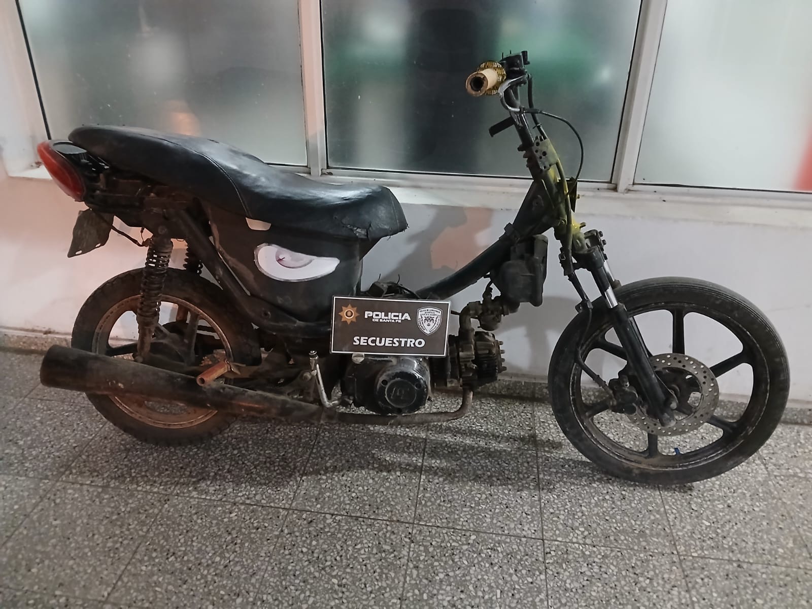 Circunstancias en que personal del Comando Radioeléctrico Zona Norte se encontraba realizando patrullaje preventivo por calle Fray Luis Bertran y Santa Fe Barrio Caritas observan un masculino en una motocicleta tipo mosquito (sin plástico), a quien le dan la voz de alto con el fin de proceder a su identificación, éste intento darse a la fuga a gran velocidad por lo que realizaron un seguimiento controlado con uso de balizas y sirenas, logrando interceptarlo en calle Pablo Sexto procediendo a la aprehensión de quien resulto ser un joven mayor de edad y secuestro de la motocicleta tipo mosquito sin plástico, sin espejos, sin luces y sin tablero.
